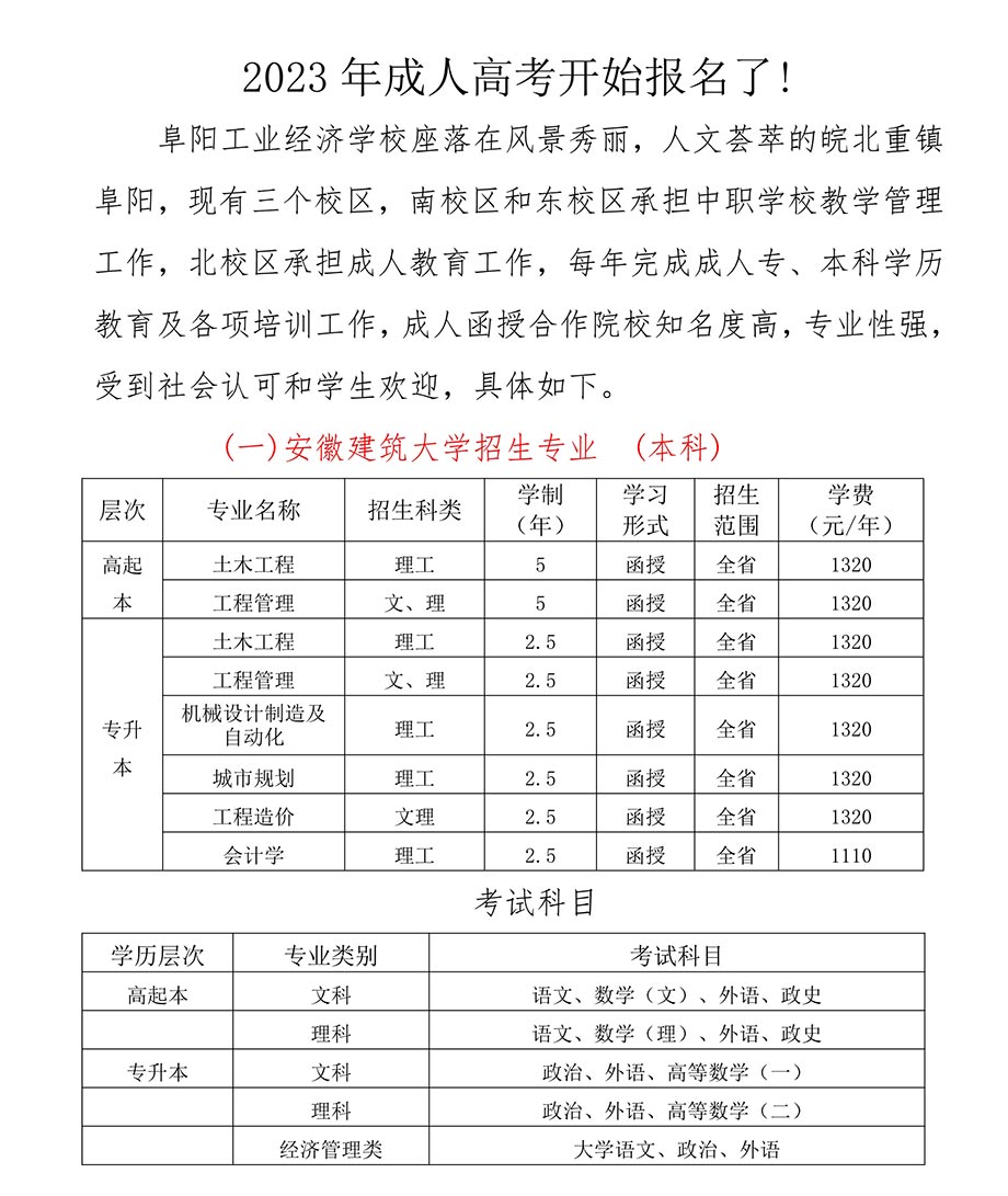 2023年成人高等教育招生简章