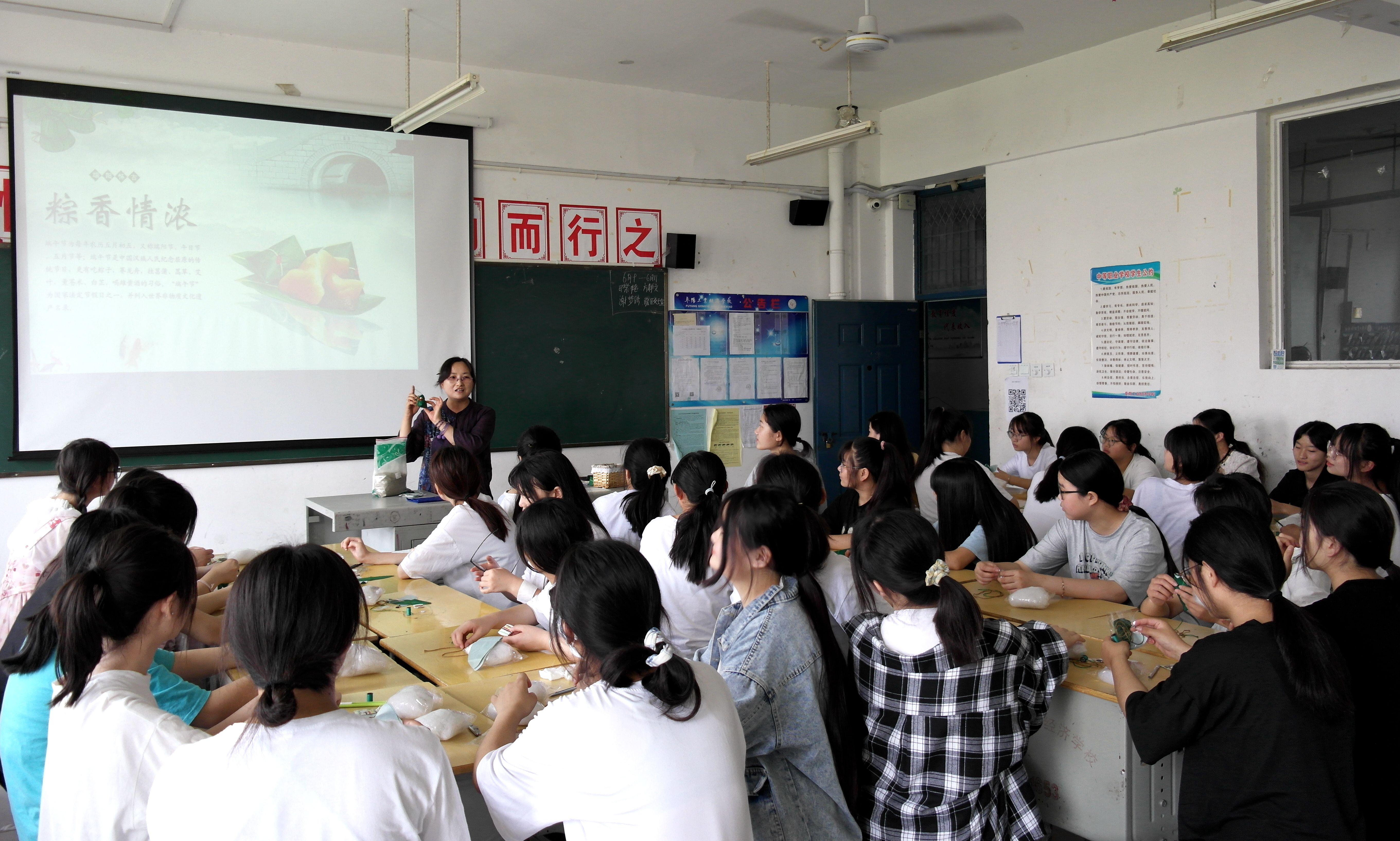 阜阳工业经济学校开展“我们的节日•端午节”包粽子和做香囊活动