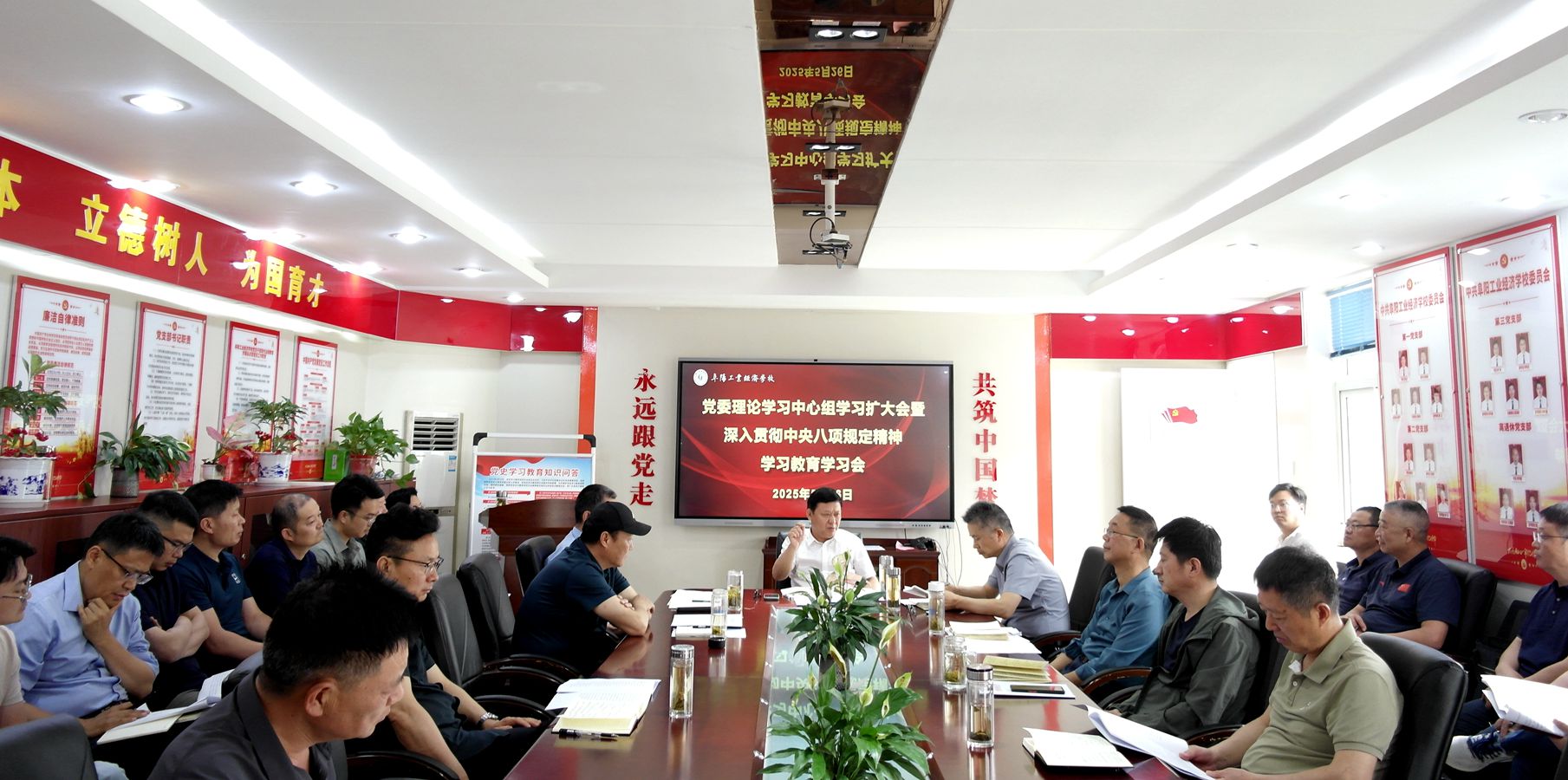 5月26日,阜阳工业经济学校召开党委理论学习中心组学习扩大会暨深入贯彻中央八项规定精神学习教育学习会,校党委书记周波主持会议,校班子成员、各科处室负责人参加会议。