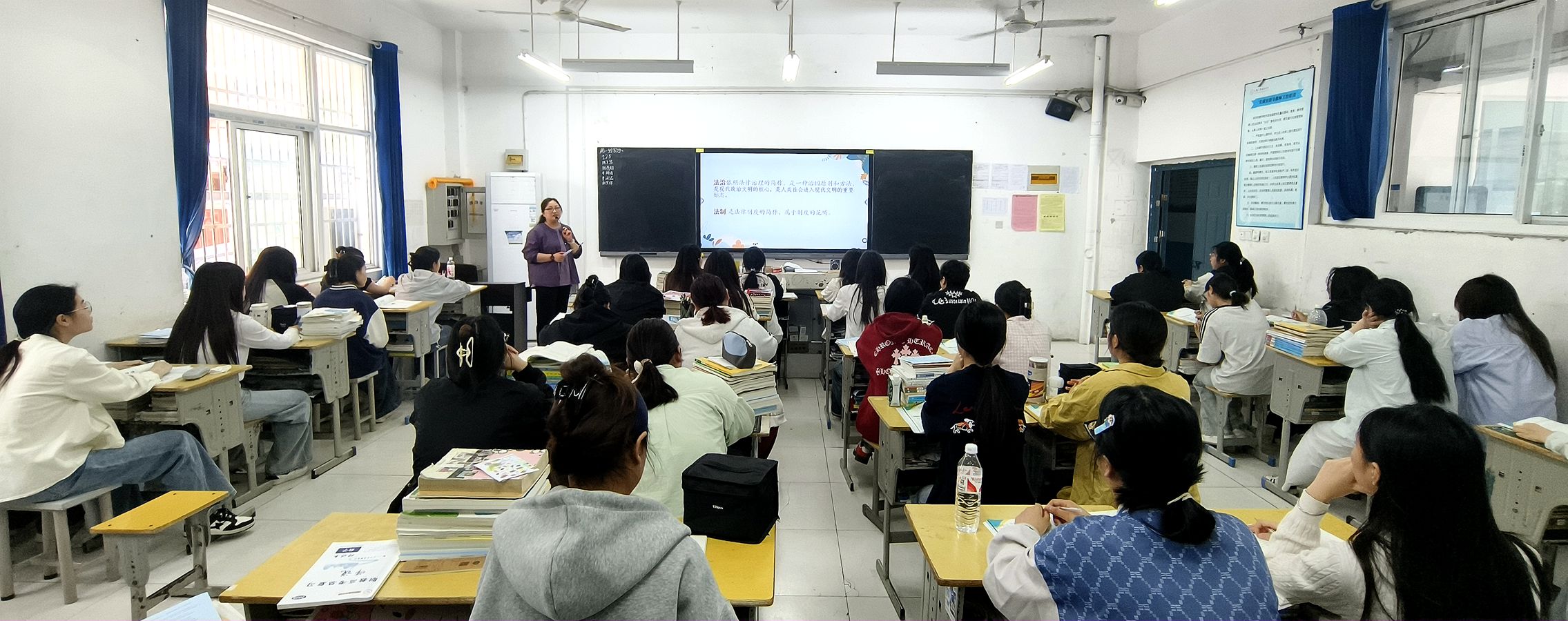 4月24日上午第1节课,冉莉老师在2023级幼儿保育2班开展《中国特色社会主义法治道路》公开课示范教学。冉老师结合课程内容进行读书分享,在培养学生良好的学习习惯的同时,通过案例分析和小组讨论,让学生了解全面依法治国的意义与成就,引导学生树立法律意识,明白法治建设与生活息息相关,提升学生的法治素养和社会责任感。