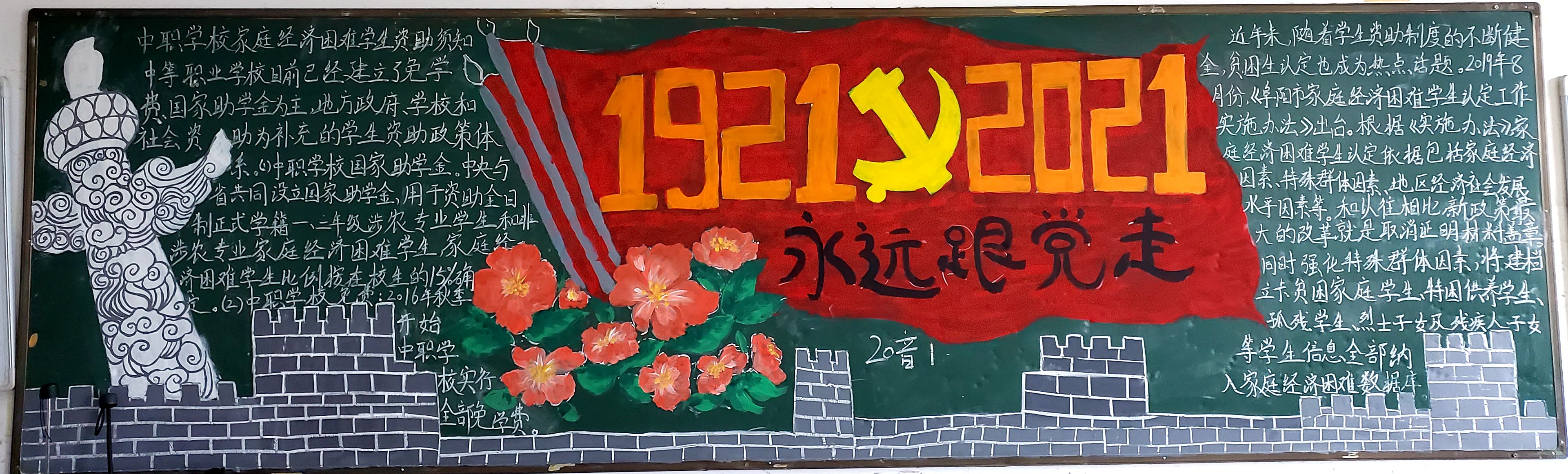 阜阳工业经济学校开展以“学党史、知党情、跟党走”为主题黑板报活动