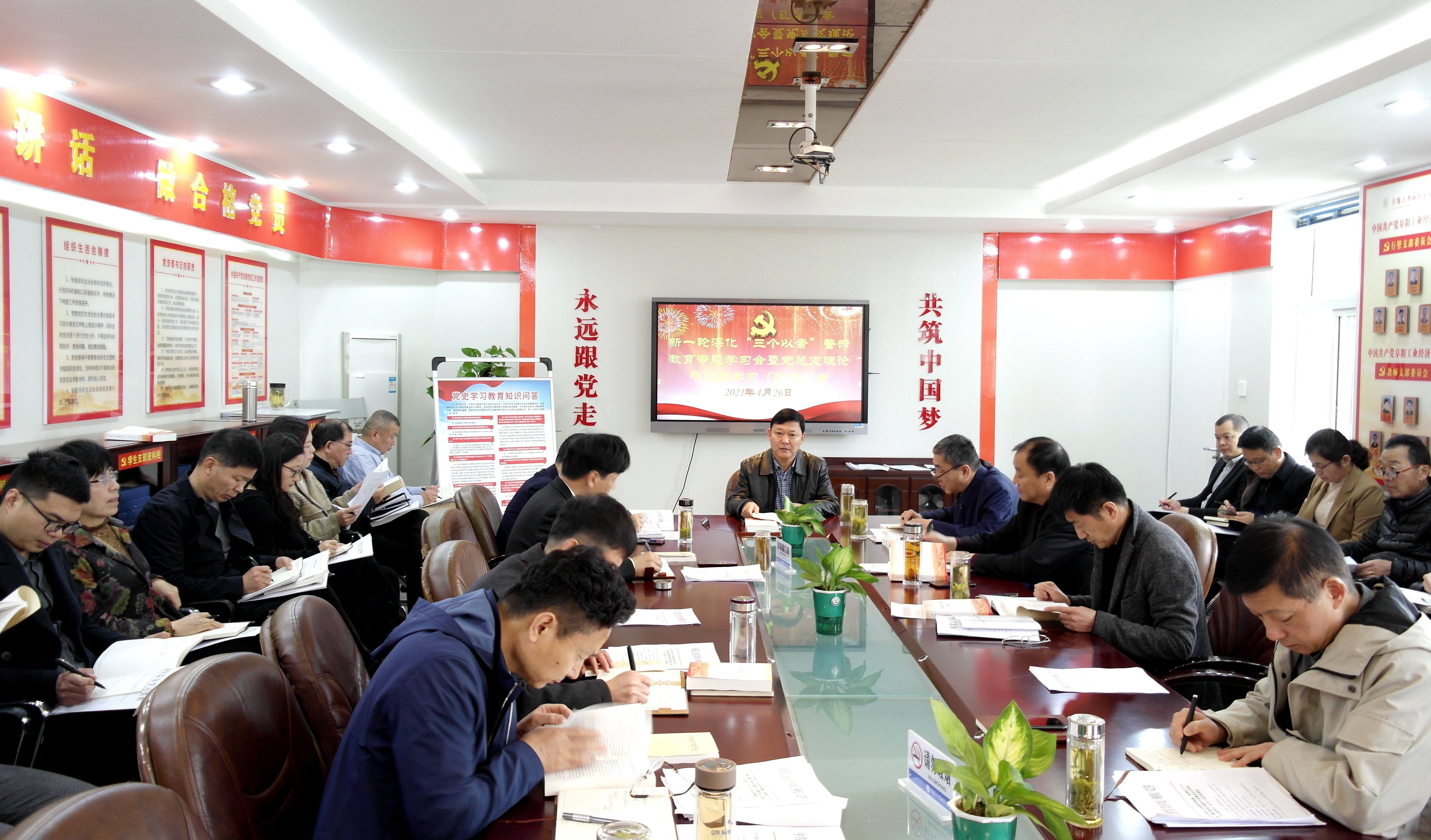 4月26日,阜阳工业经济学校召开新一轮深化“三个以案”警示教育专题学习会暨党总支理论中心组学习(扩大)会,校党委书记、校长周波主持会议,校班子成员,中层干部(含教研组组长)及新一轮深化“三个以案”警示教育领导小组办公室人员参加会议。
