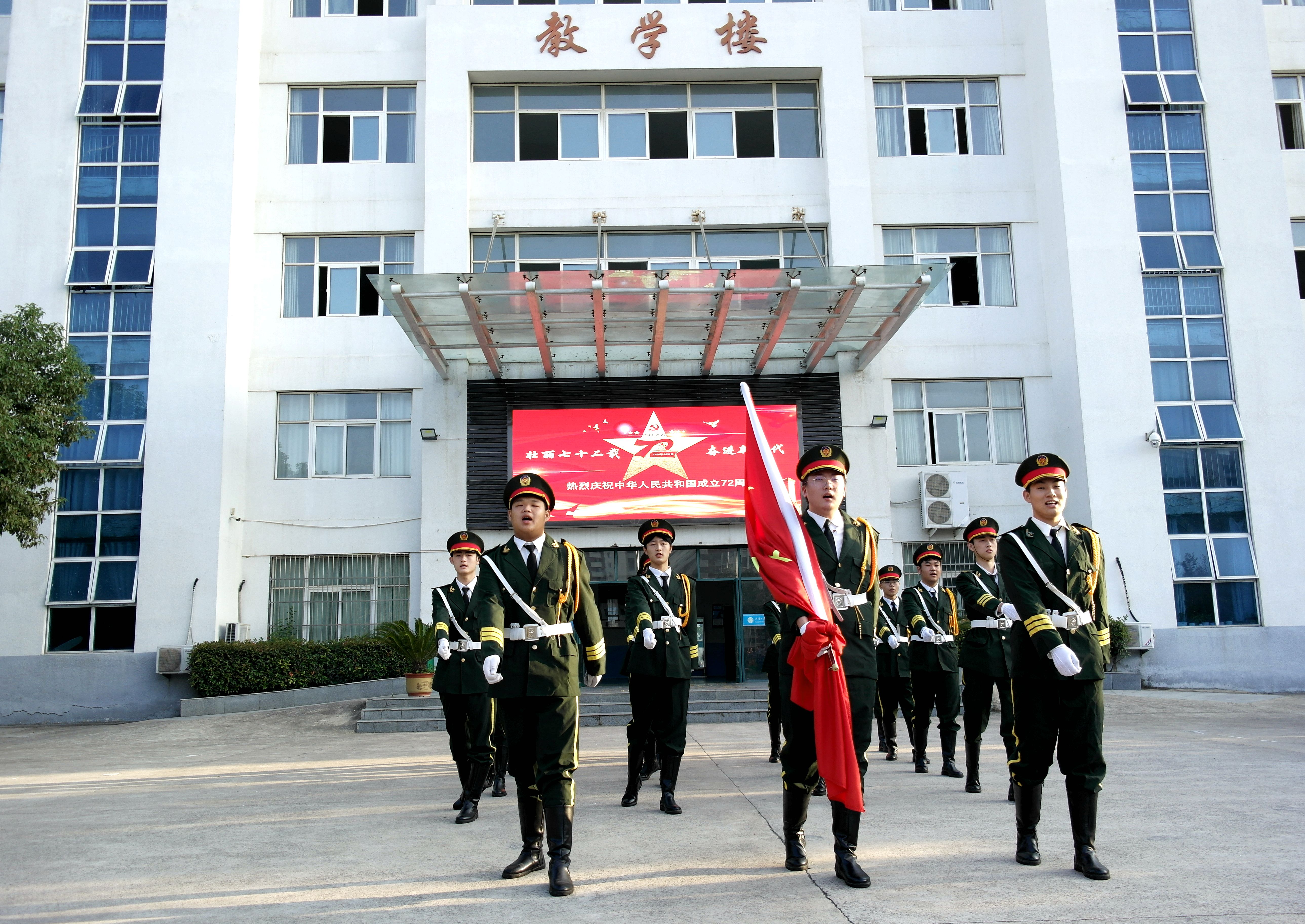 为庆祝中华人民共和国成立72周年,大力营造爱党爱国爱社会的浓厚氛围,弘扬伟大建党精神,砥砺爱国情怀,激励全校师生以更加昂扬的士气、更加饱满的精神,开启新学年、奋斗新征程。9月30日上午,在阜阳工业经济学校南校区和东校区隆重举行“请党放心、强国有我”主题升旗仪式。全体师生4000余人参加升旗仪式。