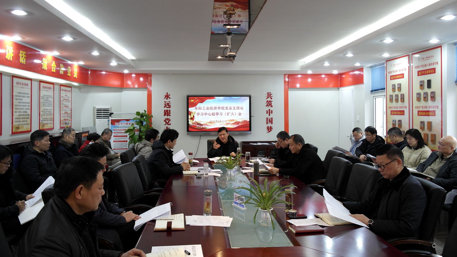2月15日,阜阳工业经济学校召开党总支理论学习中心组学习(扩大)会。校班子成员、各科室负责人参加会议。会议由校党委书记、校长周波主持。