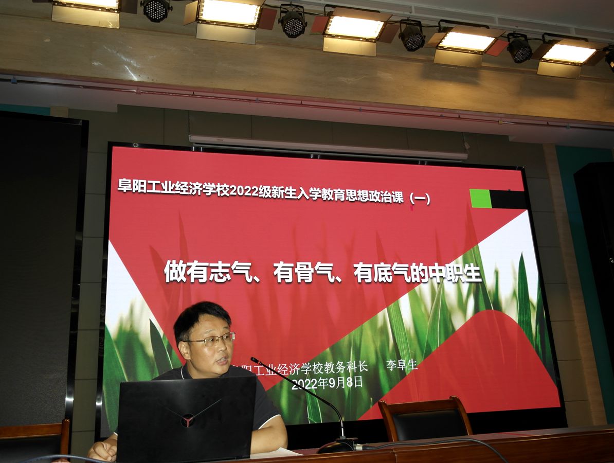 为深入学习贯彻习近平新时代中国特色社会主义思想,全面贯彻党的教育方针,落实立德树人根本任务,9月8日上午,我校在报告厅举行2022级新生入学思想政治课讲座。校教务科科长李阜生以做有志气、有骨气、有底气的中职生为主题进行了讲座,学生科科长马雨涛主持会议。