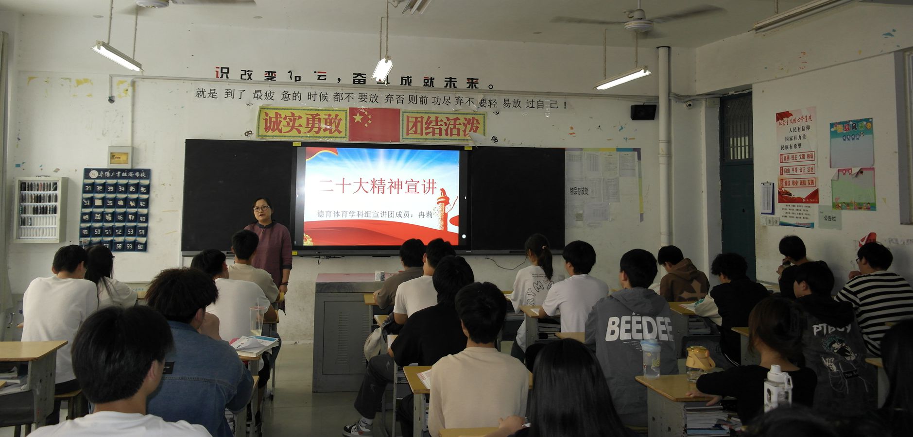 为深入学习宣传贯彻党的二十大精神,教育引导广大青少年增进政治认同、思想认同、情感认同,坚定理想信念,筑牢感党恩、听党话、跟党走的意识。近日,我校教务科和相关学科教研组组织开展党的二十大精神宣讲进班级活动。