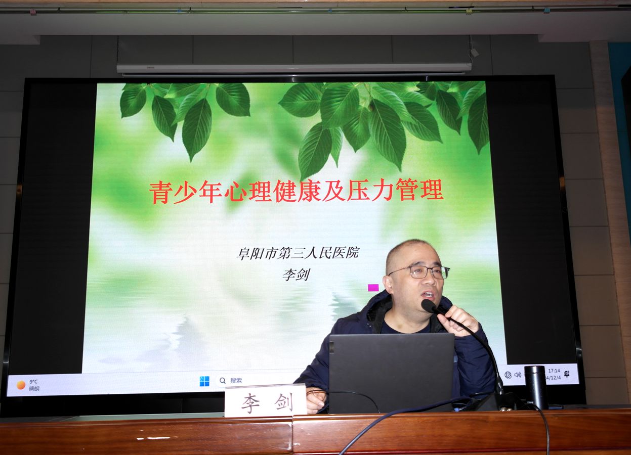 为促进心理健康教育与心理咨询工作进一步开展,提高学生心理健康素质,引导学生进行正确的心理调节,释放心理压力,12月4日,阜阳工业经济学校特邀安徽省健康巡讲专家、阜阳三院精神康复中心负责人李剑主任医师到我校作“青少年心理健康及压力管理”为题的心理健康知识讲座。市直工委副书记周晓梅,校党委书记周波及近千名学生参加。