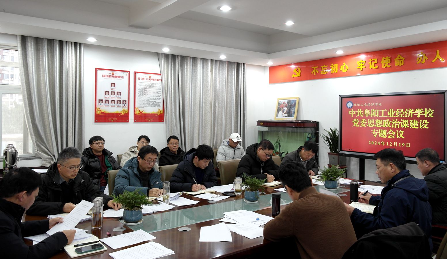 12月19日,阜阳工业经济学校党委召开思想政治课建设工作专题会议。校党委委员,教务科,教研室,德育学科组负责人及思政课教师代表参加会议。会议由校党委书记周波主持。