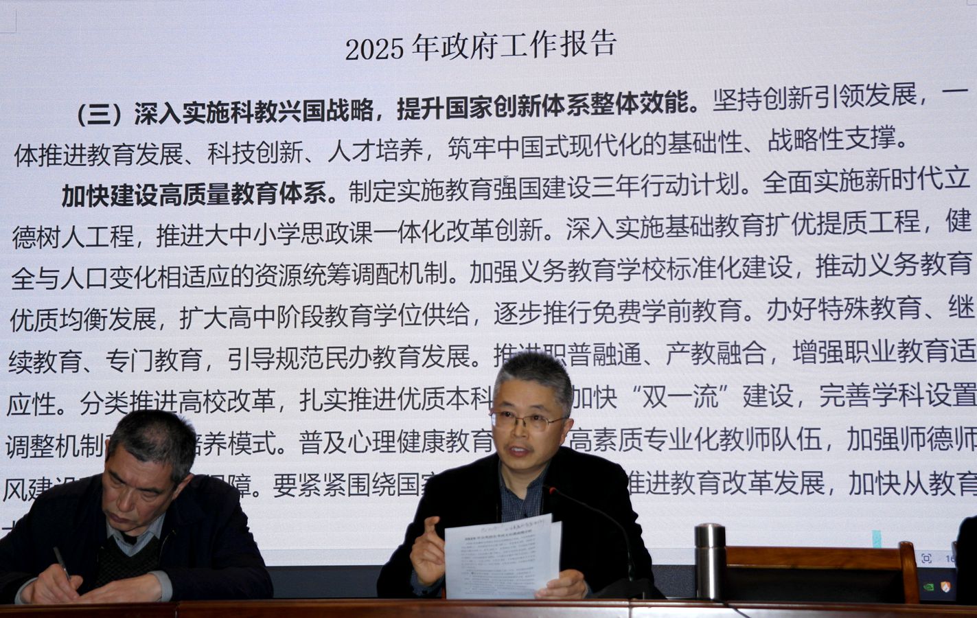 会议集体学习了习近平《论教育》教师要成为塑造学生品格品行品位的大先生篇章,传达学习了2025年“两会”精神和师德师风典型案例等内容。