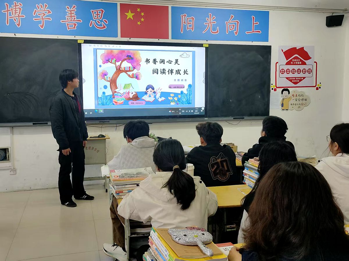 班会现场,同学们积极分享了自己的阅读经历和感悟。有的同学讲述了通过阅读经典文学作品,感受到语言的魅力和人性的光辉;有的同学分享了在阅读专业书籍时,如何解决学习中的难题,拓宽知识面;还有的同学推荐了自己喜欢的书籍,并阐述了推荐的理由。现场气氛热烈,同学们的发言充满了对阅读的热爱和对知识的渴望。