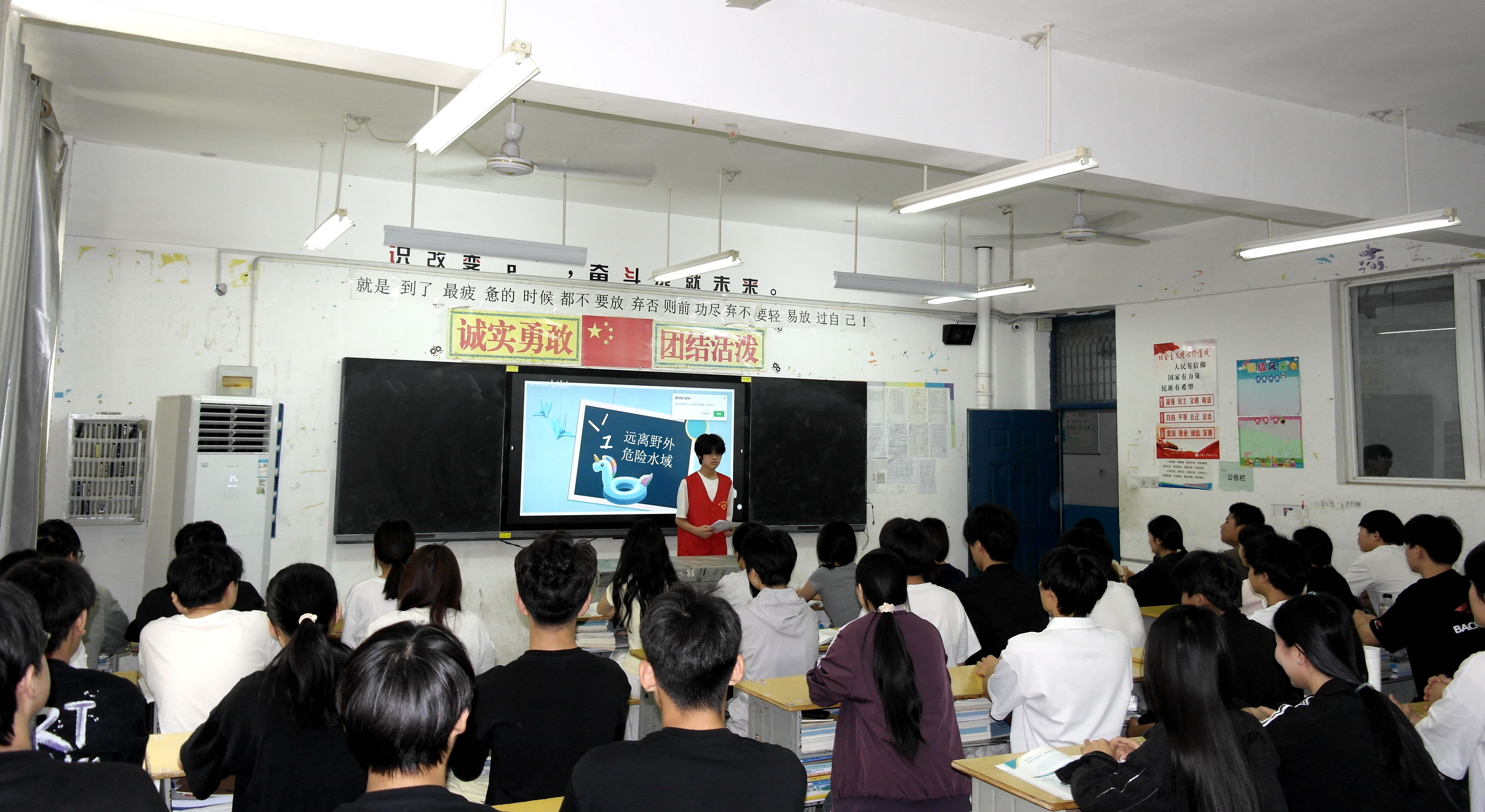 班主任充分利用多媒体课件、真实案例视频、直观图片等教学资源,系统讲解环境污染的严重危害、垃圾分类的实用技巧,引导学生从学习生活中去发现、去感受绿色生态环境的重要性,关注身边的环境问题,养成简约适度、绿色低碳的生活方式,有意识地参与到绿色环保行动中来,同时围绕防溺水安全知识展开深度科普。活动中,学生代表现场宣读防溺水倡议书,以铿锵有力的倡议号召全体同学重视生命安全。