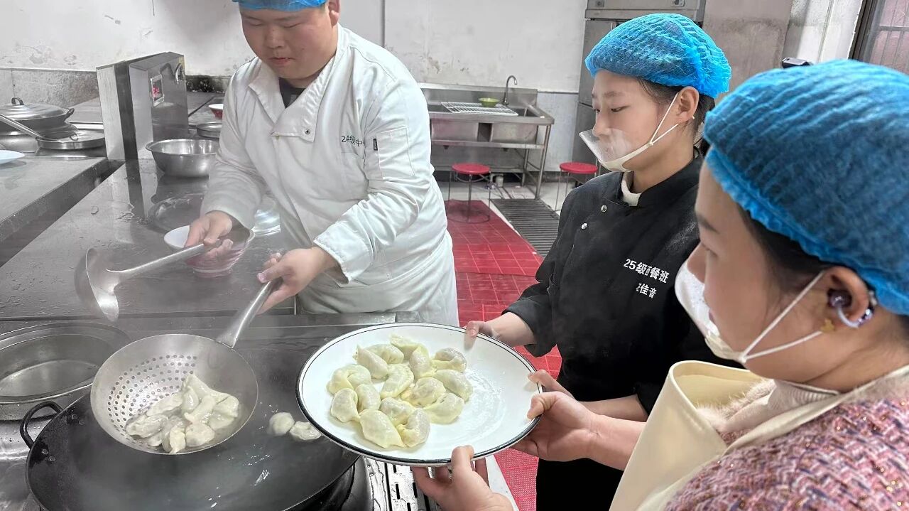 在同学们与家长的配合下,一个个形态各异的饺子新鲜出炉,既包裹着鲜香馅料,更饱含着亲情与感恩。这堂特殊的课程,既让同学们在动手实践中锤炼专业技能,更在亲子协作中让同学们拉近了与父母的距离。