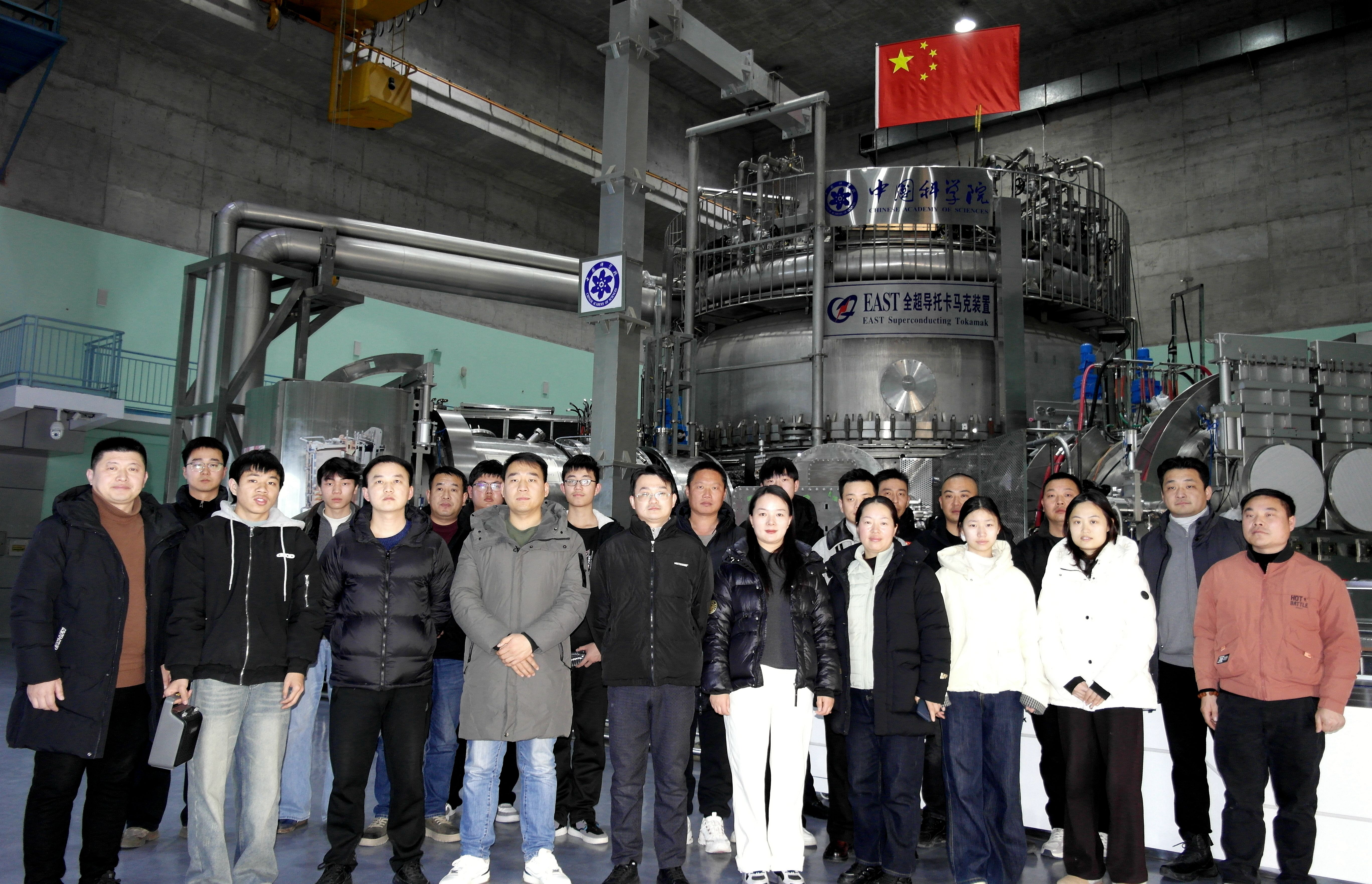 中国科学院等离子体物理研究所是国际热核聚变实验堆(ITER)计划的重要参与单位、全球磁约束聚变研究领域的国家级引领机构之一。学习团实地参观了“东方超环”(EAST)装置,现场了解其运行原理、核聚变能源研发进展及其潜在应用前景。通过近距离接触我国尖端科技的重大成果,师生们不仅直观感受到“大国重器”的磅礴力量,更深刻领悟了“大国工匠”精神的内核,进一步增强了民族自信心、向心力与凝聚力。
