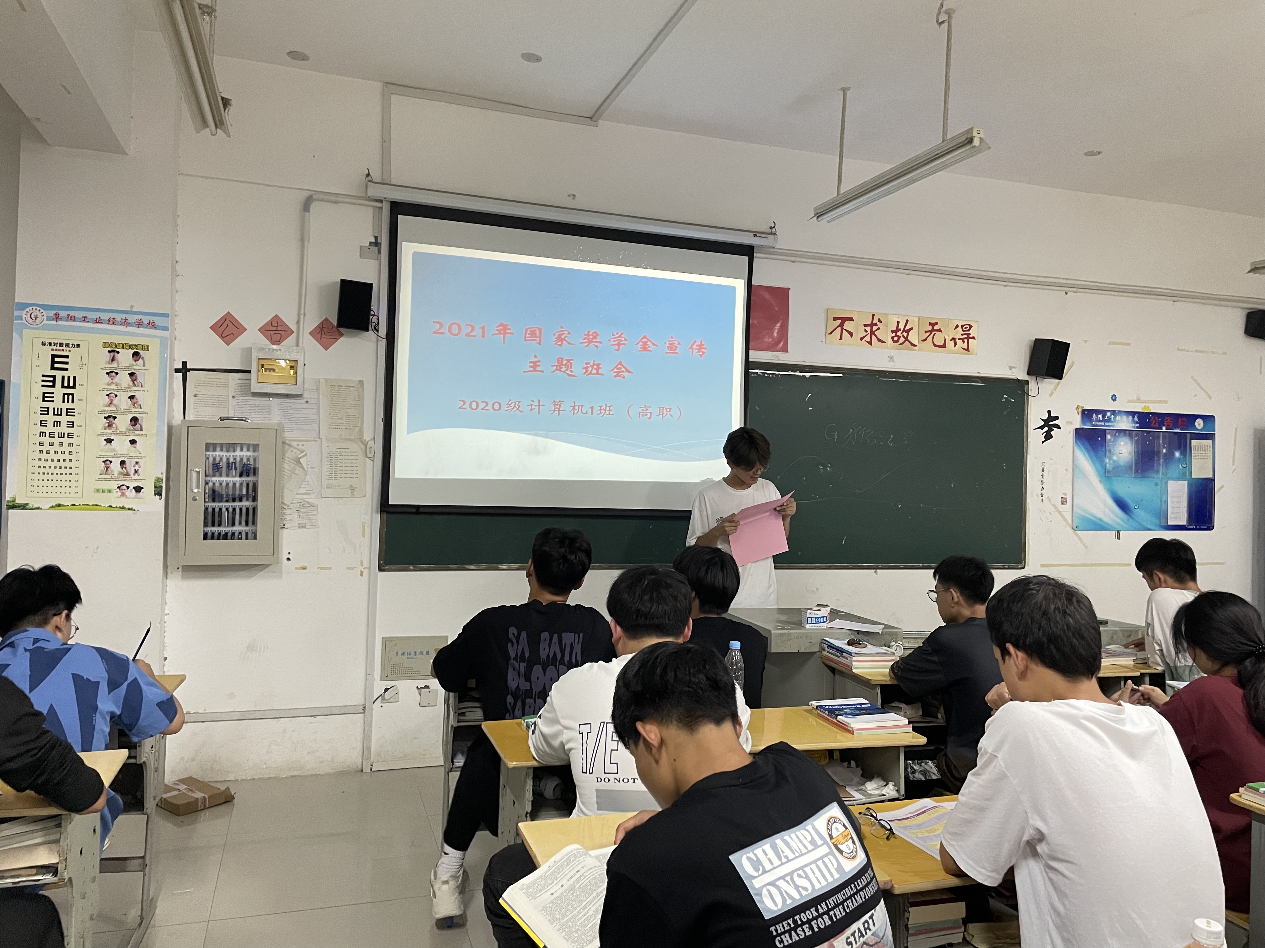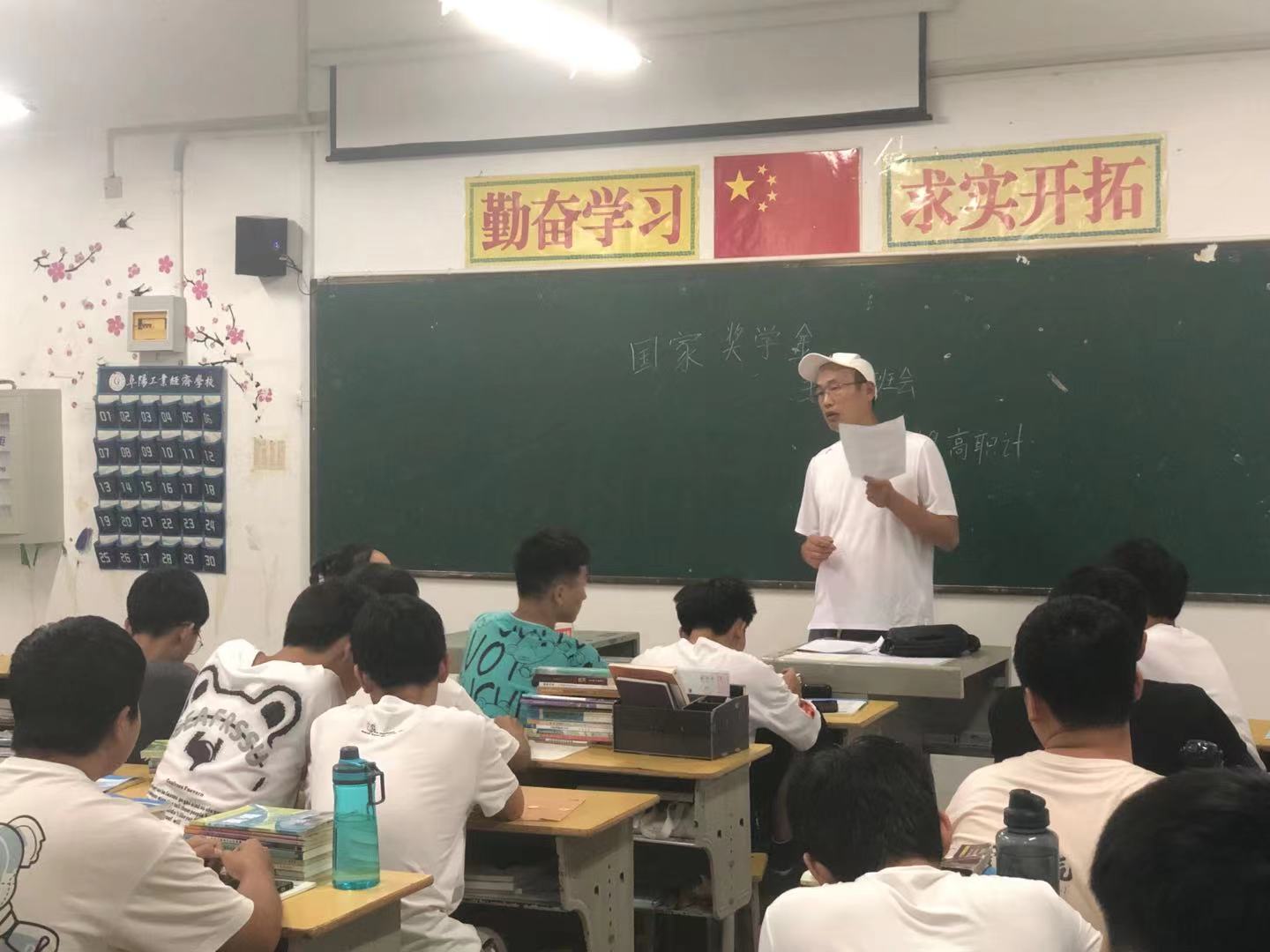 阜阳工业经济学校各班级按校资助办要求利用晚自习时间召开2021年国家奖学金宣传主题班会。系统地讲解了国家奖学金的申请条件、评选标准、评审制度、申报流程及相关注意事项。并提醒符合条件的同学们尽快办理奖学金相关事宜。