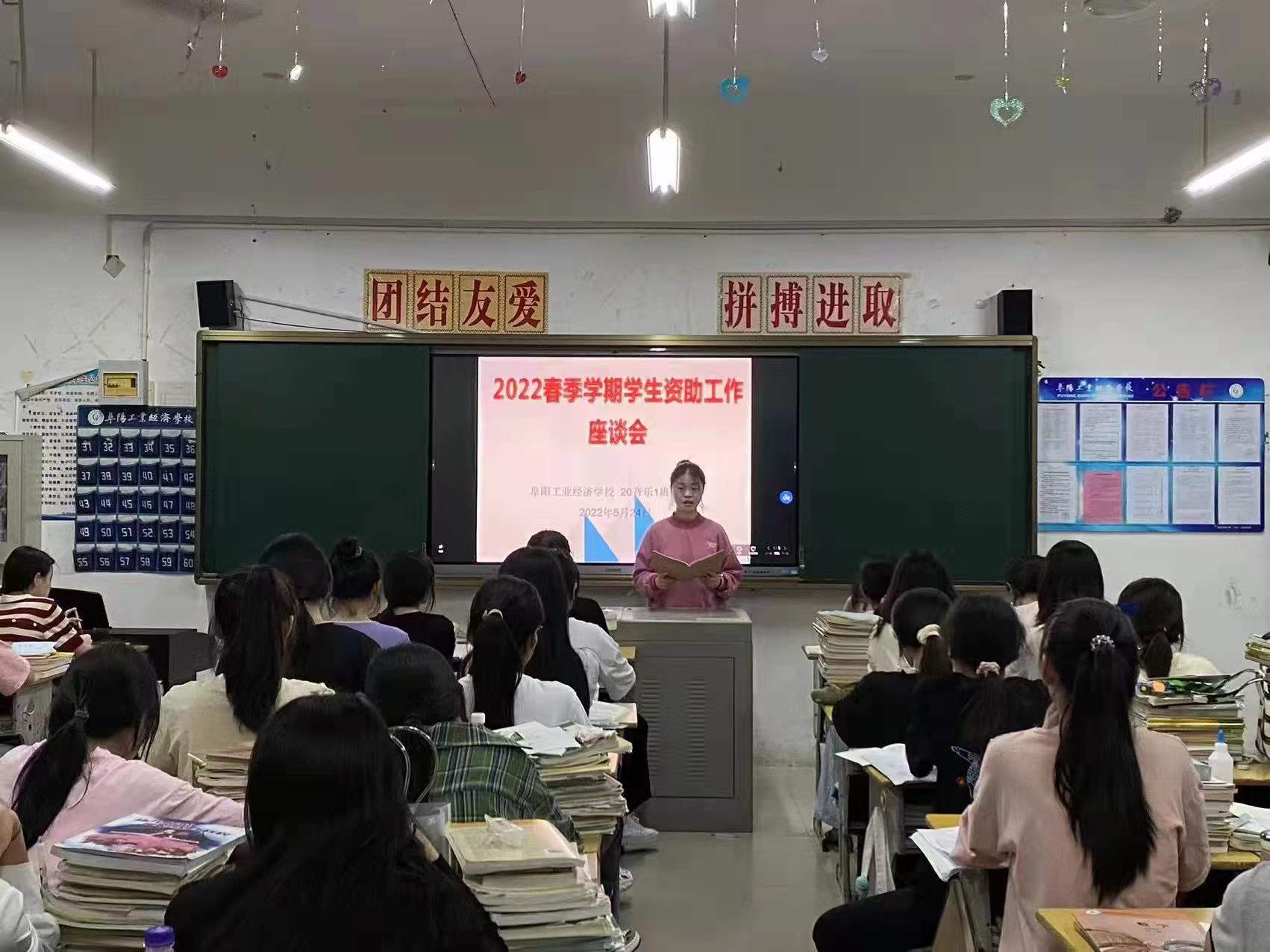 阜阳工业经济学校本周各班级按照校资助办要求利用晚自习时间开展学生资助工作座谈会。