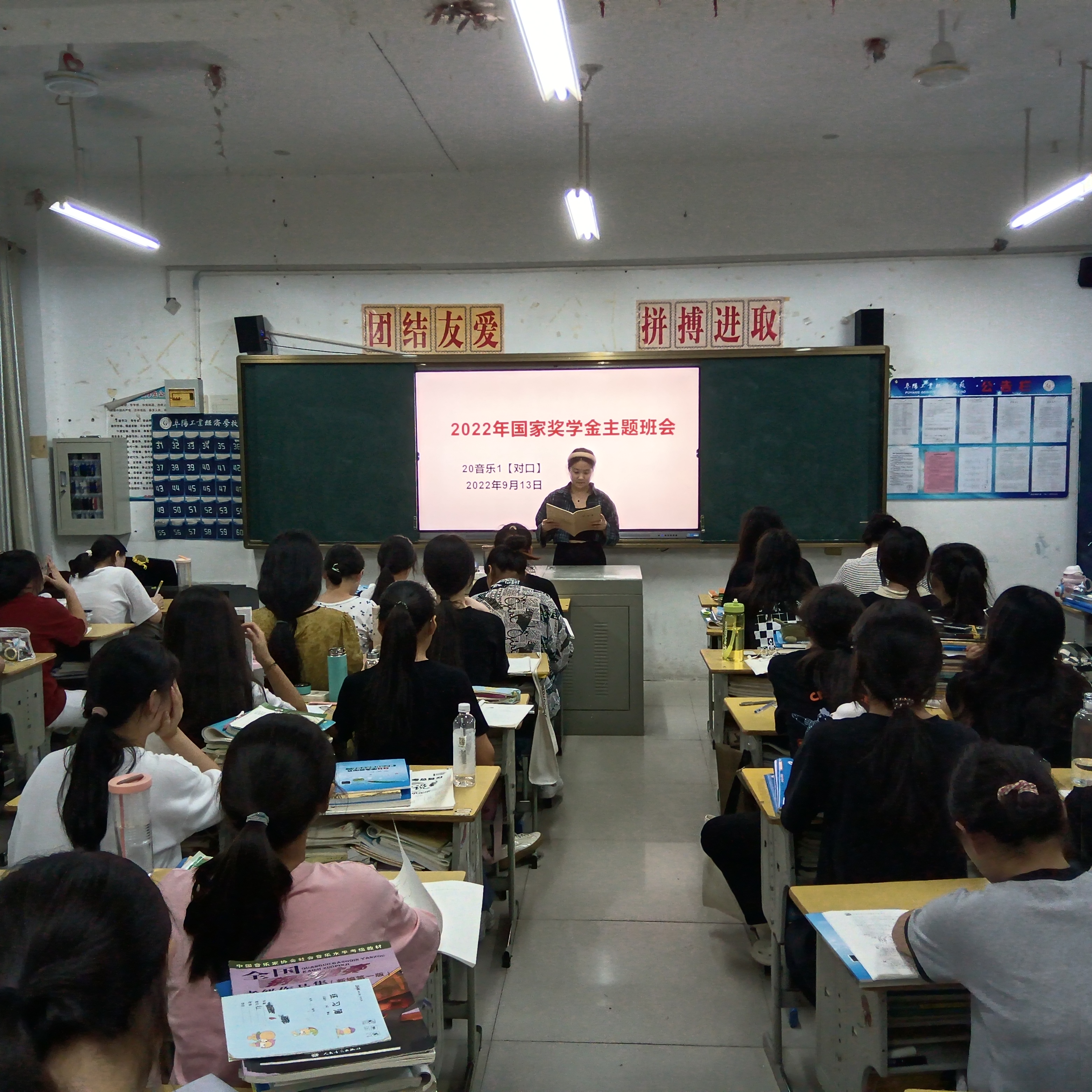 阜阳工业经济学校各班级按校资助办要求利用晚自习时间召开2022年国家奖学金宣传主题班会。班主任带领学生学习了国家奖学金的申请条件、评选标准、评审制度、申报流程及填表注意事项。并鼓励符合条件的学生踊跃报名,尽快办理奖学金相关事宜。