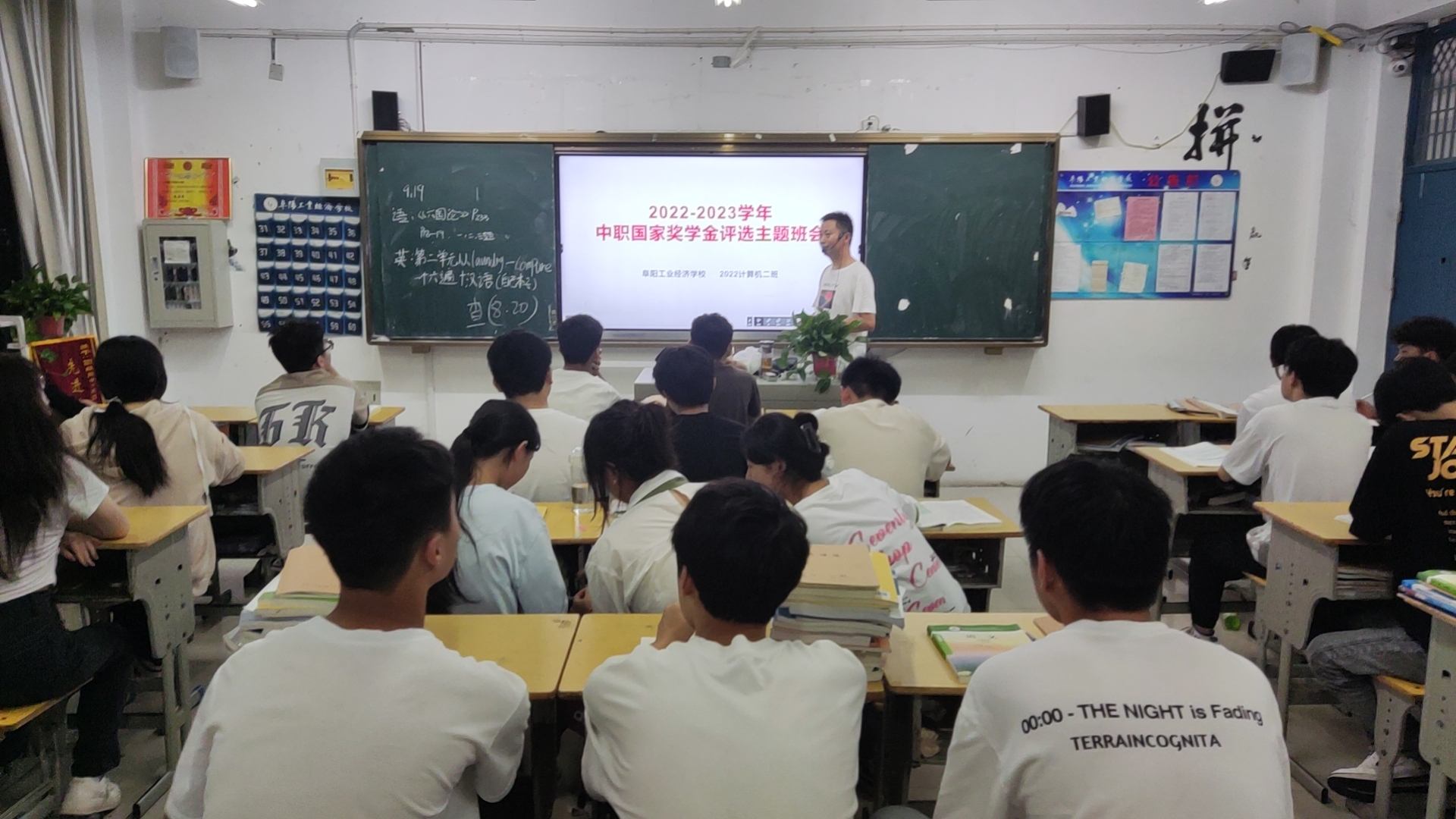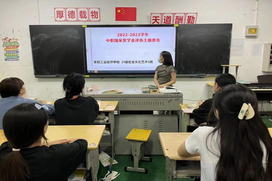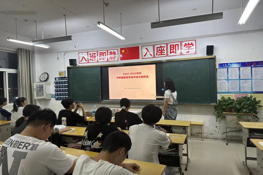 阜阳工业经济学校各班级按校资助办要求利用晚自习时间召开2023年中职国家奖学金评选主题班会。班主任带领学生学习了国家奖学金的申请条件、评选标准、评审制度、申报流程及填表注意事项。并鼓励符合条件的学生踊跃报名,尽快办理奖学金相关事宜。