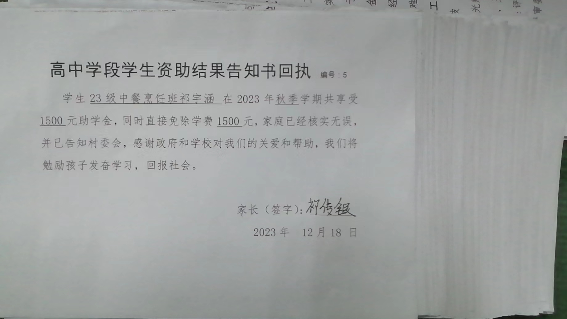 23年秋季学期学生家长高中学段学生资助结果告知书活动