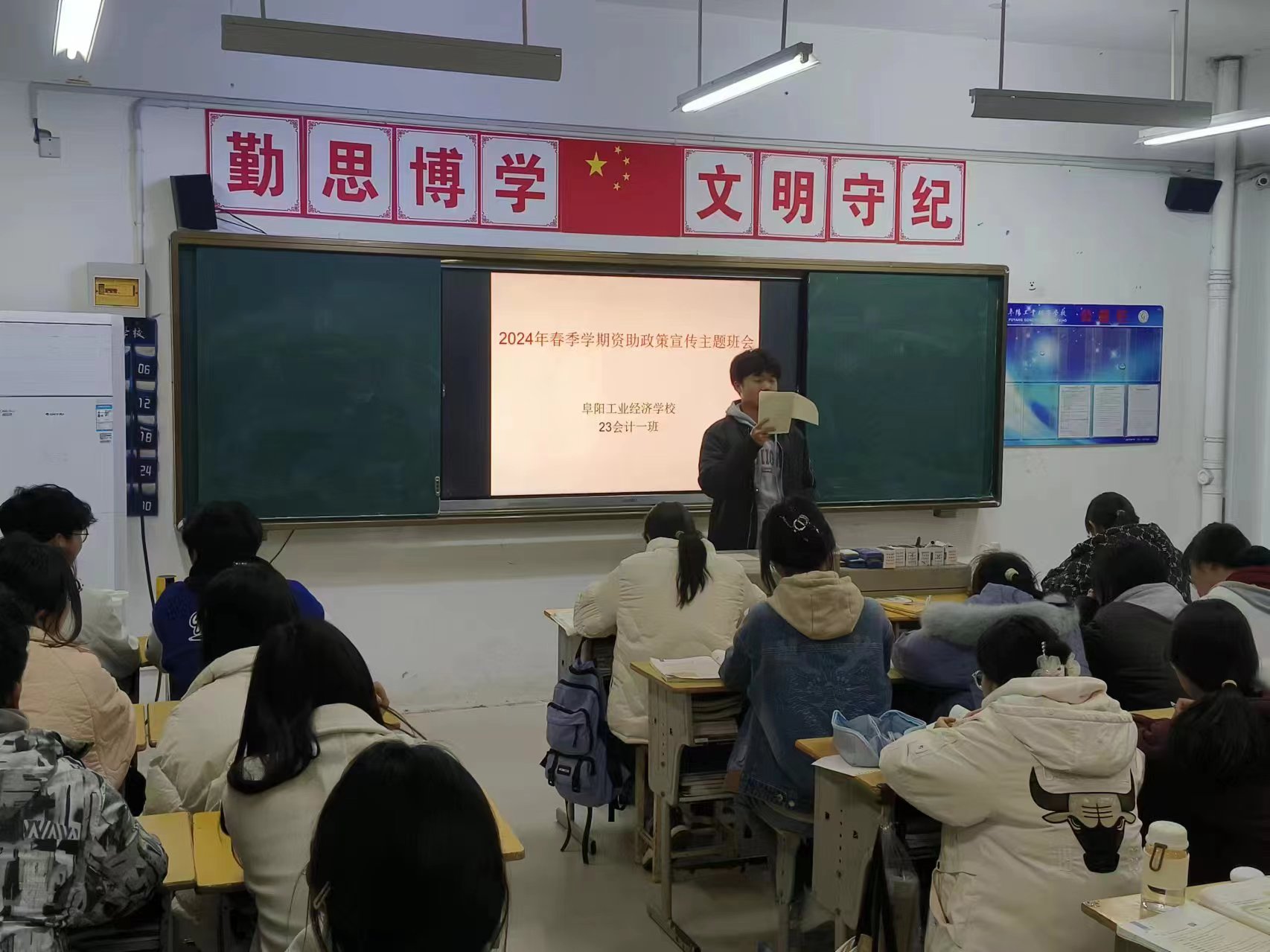 阜阳工业经济学校各班级本周利用晚自习时间开展了资助政策宣传主题班会活动。