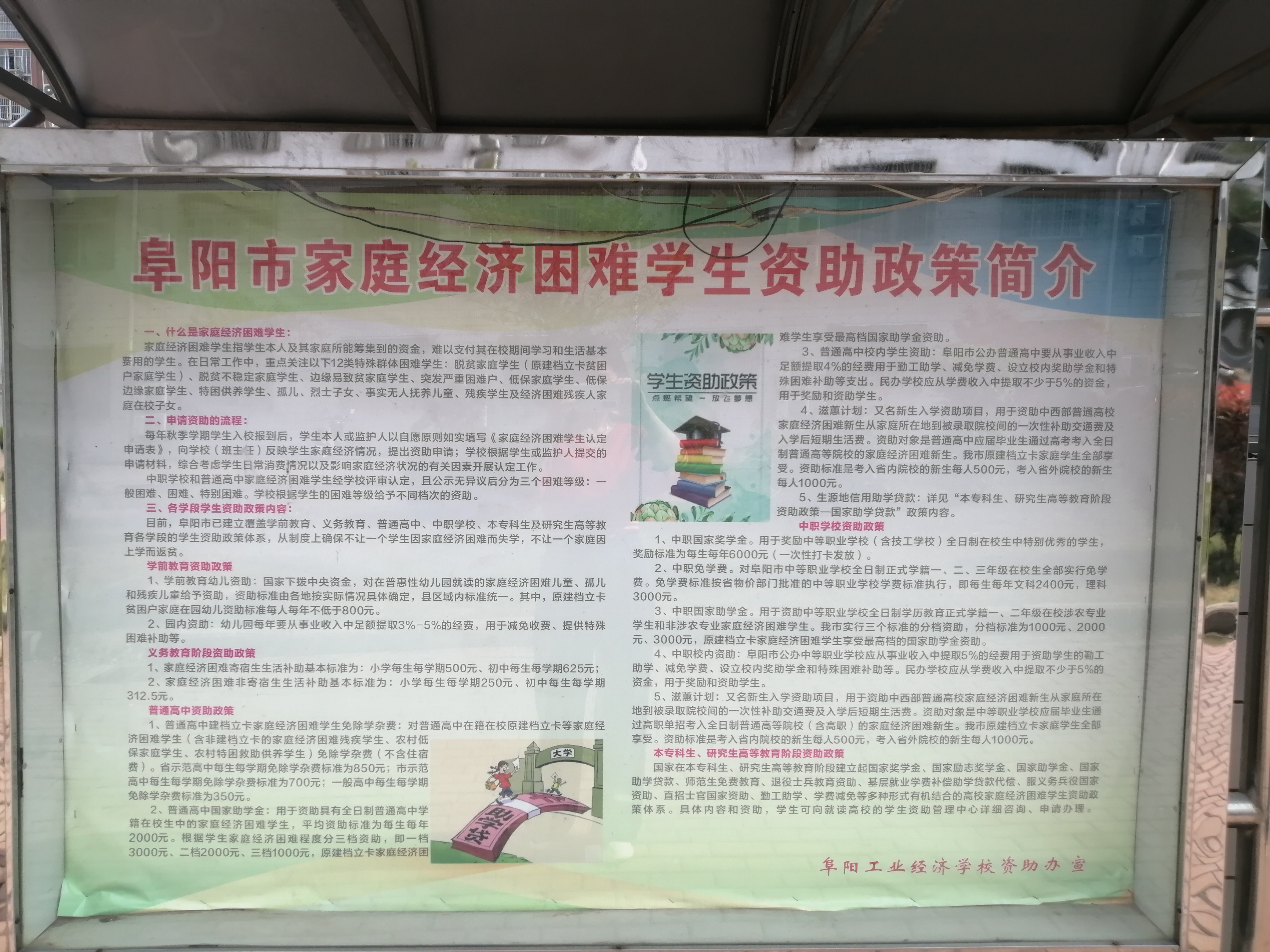 阜阳工业经济学校 2024年春季学期资助、免学费公示