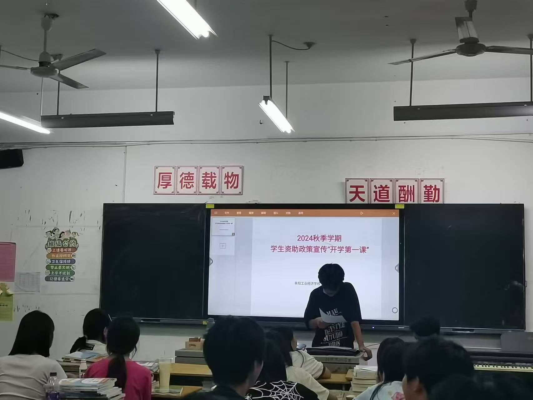 阜阳工业经济学校各班级本周利用晚自习时间开展了资助政策宣传“开学第一课”主题班会活动。