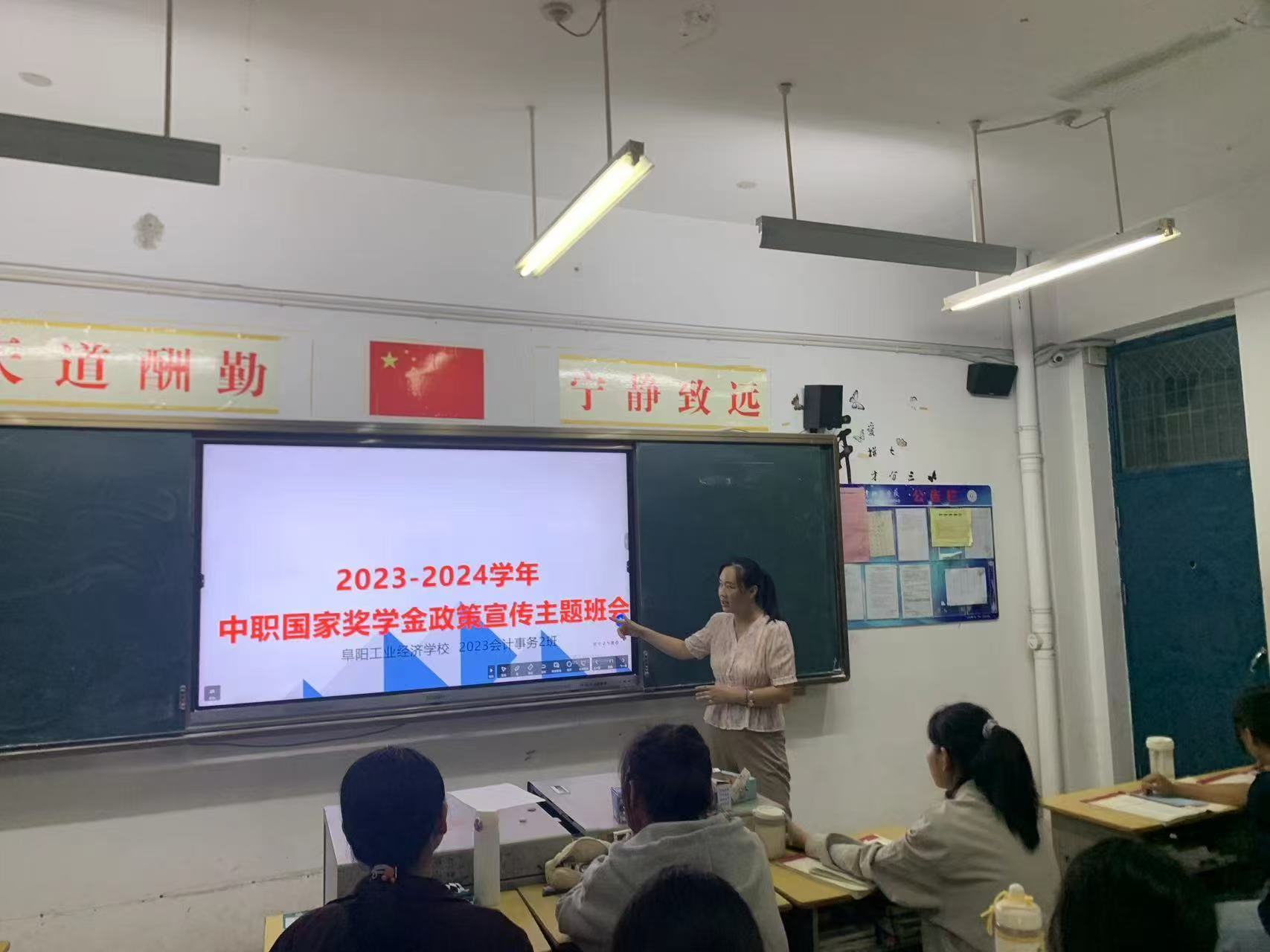 阜阳工业经济学校各班级按校资助办要求利用晚自习时间召开2024年中职国家奖学金政策宣传主题班会。班主任带领学生学习了国家奖学金的申请条件、评选标准、评审制度、申报流程及填表注意事项。并鼓励符合条件的学生踊跃报名,尽快办理奖学金相关事宜。